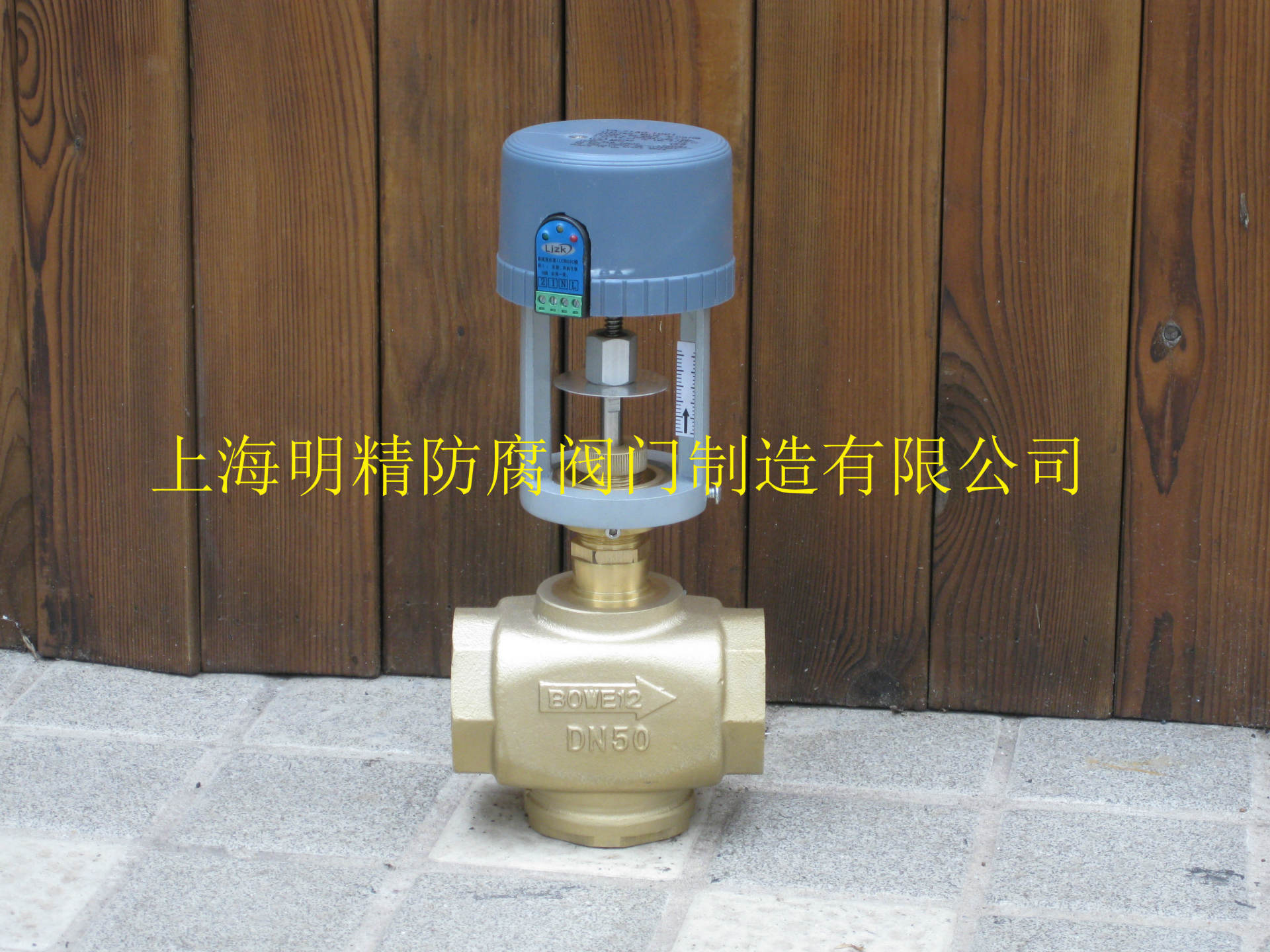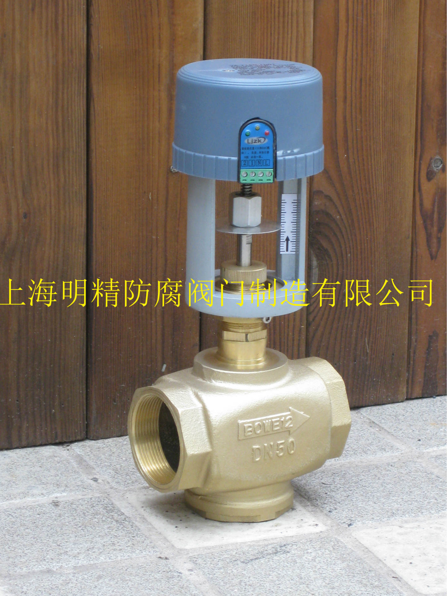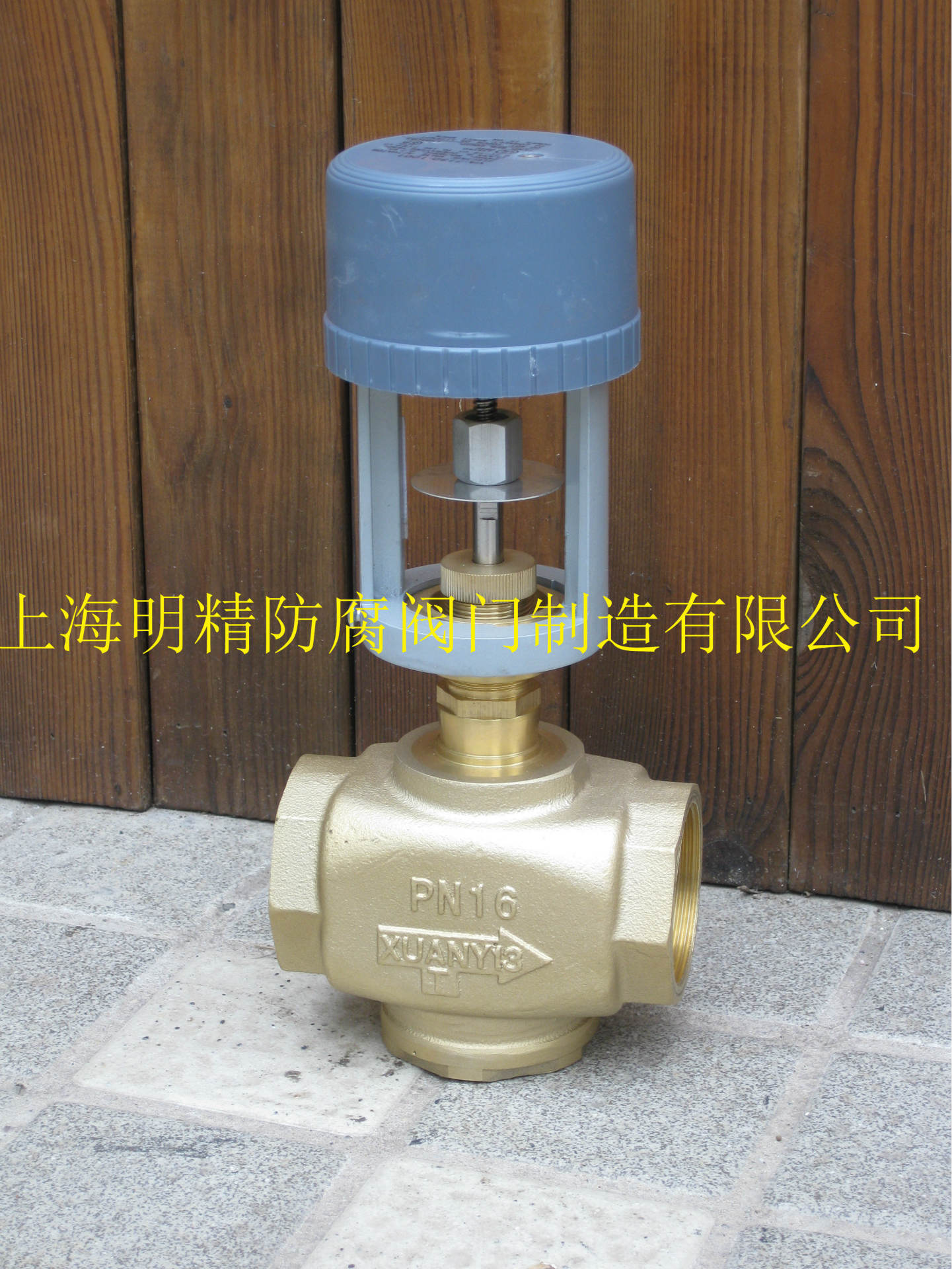 上明牌VB-7200系列铸铜二能阀、三通阀配以电子驱动控制装置后,能调节蒸汽或水在采暖、通风以及空调系统中的流量,广泛用于中央调系统中。