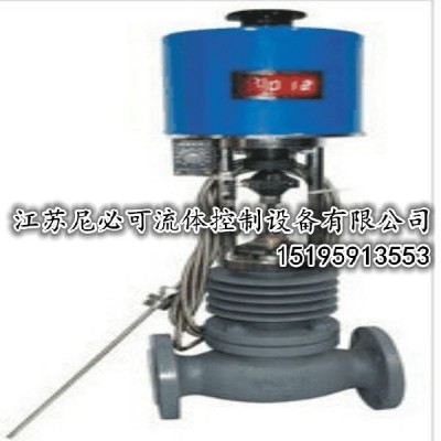 自力式电控温度调节阀(适用于较大口径及导热油控制),该阀的特点只需普通220V电源,利用被调介质自身能量,直接对蒸汽、热水、热油与气体等介质的温度实行自动调节和控制,亦可使用在防止对过热或热交换场合,该阀结构简单,操作方便,选用调温范围广、响应时间快、密封性能可靠,并可在运行中随意进行调节,因而广泛应用于化工、石油、食品、轻纺、宾馆与饭店等部门的热水供应。