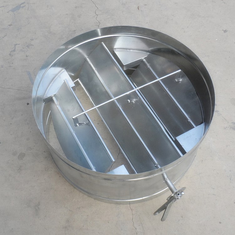 (3)风量调节阀阀体构架用2毫米镀锌板冷轧成型后,以二氧化碳气体保护焊接或由普通Q235板加工焊接而成;叶片用1毫米镀锌板冷轧为瓦楞形,两片合成点焊插方轴,或2毫米G235钢板冷 压成形,单片冲孔插方轴或焊圆轴。