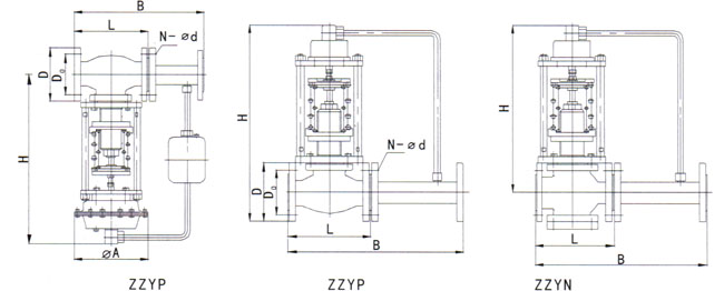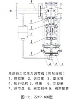 ZZY型自力式压力调节阀由检测执行机构、阀本体、取压管与阀前(后)接管组成。其结构见图一