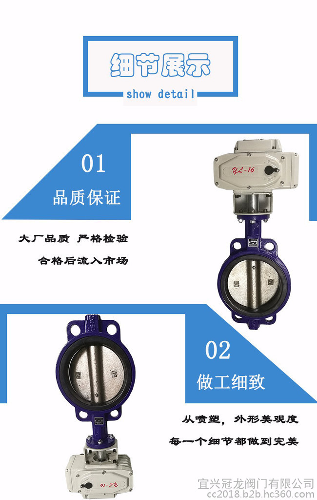 电动调节蝶阀通常由角行程电动执行机构(0~90°部分回转)和蝶阀整体通过机械连接,经过安装调试后共同组成。 根据动作模式分类有:开关型和调节型。