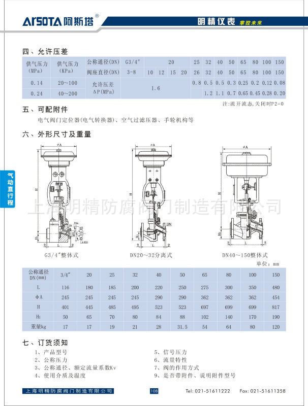 QZJHPF46型气动薄膜衬氟波纹管单座调节阀由新型多弹簧薄膜执行机构和直通单座衬氟阀组成,明精阀芯为软密封结构。
