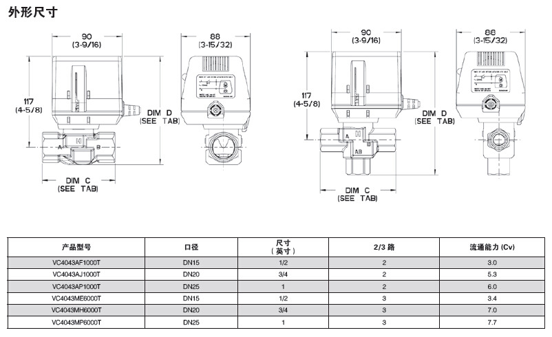 霍尼韦尔VC4043/VC4044弹簧复位电动阀特点