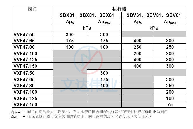 VVF47.100二通座阀与执行器匹配表