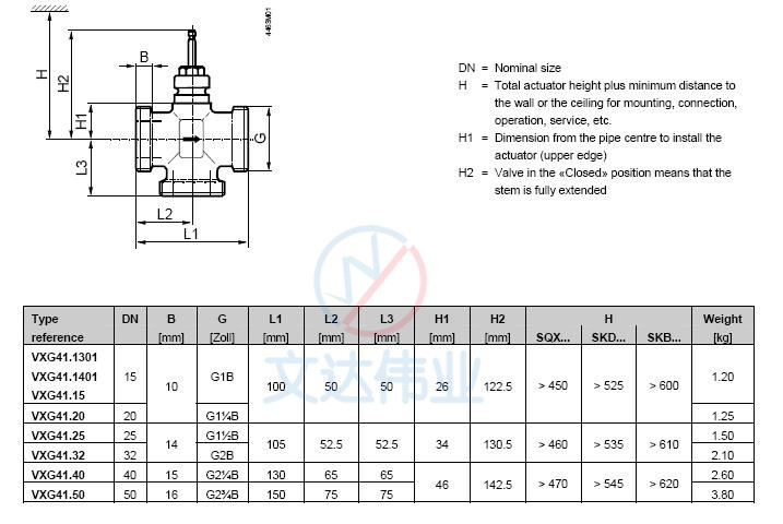 VXG41.50电动三通阀阀体适用于供热系统、生活水系统、暖通空调系统中作为标准的控制阀或安全截止阀。适用于开式系统和闭式系统。阀体材质为青铜螺纹,阀杆行程20MM,可与SQX SKD执行器配合安装使用。
