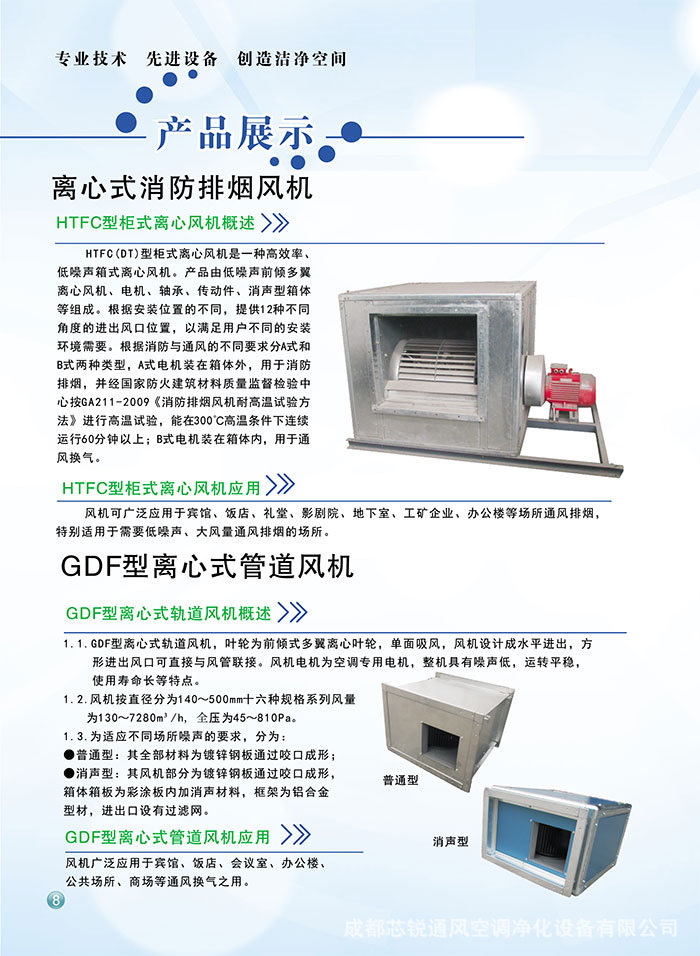 成都芯锐通风空调净化设备有限公司(成都市新锐通风空调净化设备厂)位于成都市新都区工业东区白云路760号,是从事通风空调配件生产、销售和安装的专业化公司。公司生产厂房占地4000多平方米,施工安装、加工制作、检测等全面先进设备。具有强有力的工程施工安装、管理加工制造团队。公司生产各种型号规格的空气净化设备、各种空气过滤器、高效送风口、铝合金风口、调节阀、风机、风机箱、防火排烟阀门、消声器、风淋室、层流罩、组合式中央空调机组、玻璃钢风管、FCS不燃无机复合风管、共板法兰风管等。公司产品广泛用于微电子、微生物、制药、医疗卫生、食品饮料、仪器仪表、宾馆饭店、写字楼等诸多行业,各项技术经济指标列在全省同行业中**。