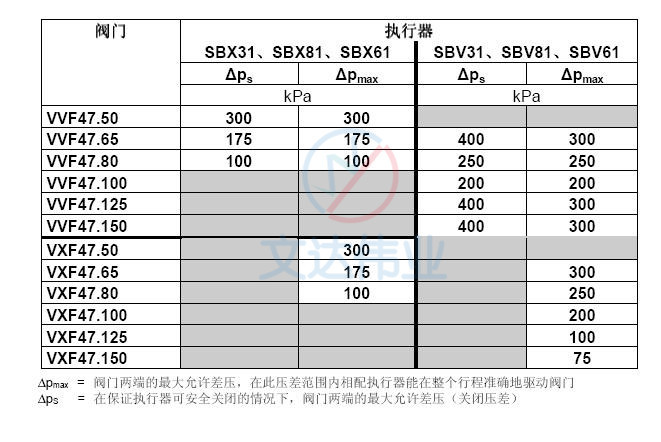 VXF47.100三通座阀与执行器匹配表