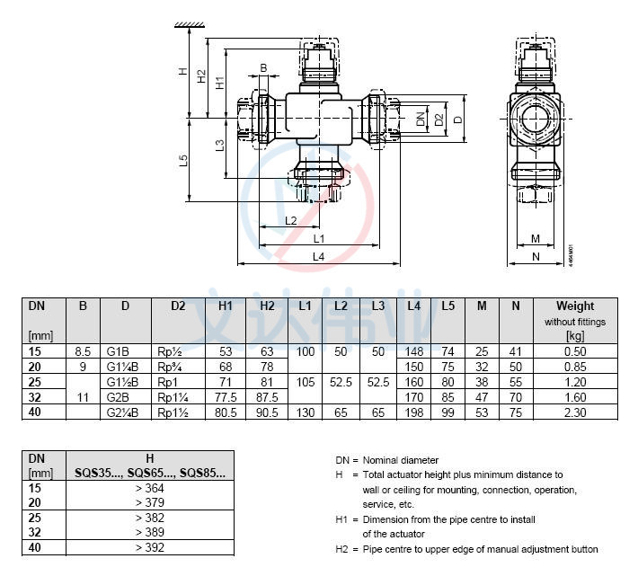 VXG44.40两通外螺纹调节阀体,适用于中小型供暖、通风和空调设备中的控制阀或安全截止阀,适用于闭式系统,适用介质为冷却水、冷冻水、低温热水、防冻水等。可与SQS35 SQS65 SQS85执行器配合安装使用。