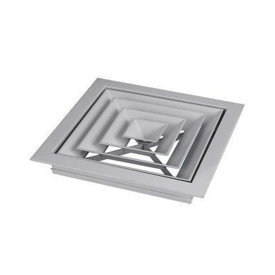 方形散流器具有良好的散流特性和美观的外形,广泛应用于空调系统中作送风口,该散流器可做成一面吹、两面吹、三面吹和四面吹能满足所有类型天花板的要求,散流器外框和内芯可分离,拆装容易,便于调节风量根据使用要求,散流器后端可配人字阀(风量调节阀)来调节风口出风量(obd)。其外框和内芯采用**铝合金型材制作,并经本色阳极化处理,阳极化膜坚实耐腐蚀。本散流器气流属贴附(平送)型。广泛适用于医院、剧场、教室、音乐厅、图书馆、游艺厅、剧场休息厅、一般办公室、商店、旅馆、酒楼及体育馆等场所。