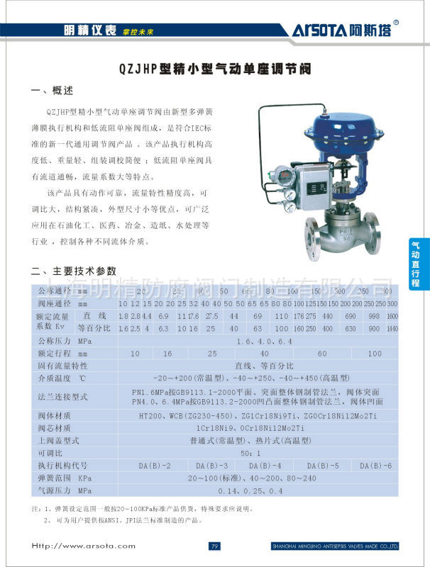 该产品具有动作可靠,流量特性精度高,可调比大,结构紧凑,外型尺寸小等特点,可广泛应用在石油化工、医药、冶金、造纸、水处理等行业,控制各种不同流体介质。