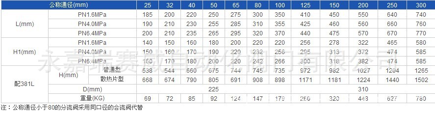 公称通径mm | 合流 | 25 | 32 | 40 | 50 | 65 | 80 | 100 | 125 | 150 | 200 | 250 | 300 |