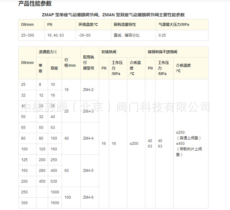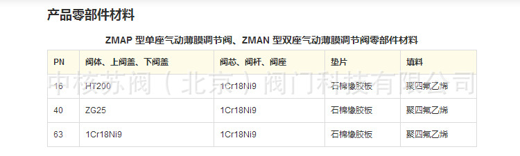 ZMAP 型单座气动薄膜调节阀、ZMAN 型双座气动薄膜调节阀:由气动薄膜执行机构和调节阀两大部分组成,它与气动调节器,减压阀及其他仪表配合使用,达到控制管道内的温度、压力、液位、流量等工艺参数。