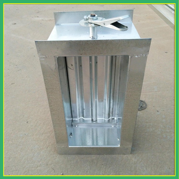 (2)风量调节阀阀体构架用2毫米镀锌板冷轧成型后,以二氧化碳气体保护焊接或由普通Q235板加工焊接而成;叶片用1毫米镀锌板冷轧为瓦楞形,两片合成点焊插方轴,或2毫米G235钢板冷 压成形,单片冲孔插方轴或焊圆轴。