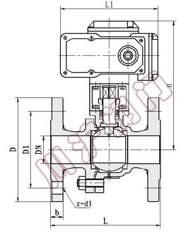 五、电动调节球阀 外形安装尺寸| 公称压力DN | L | D | H | L1 | D1 | b | Z-d1 | H1 |