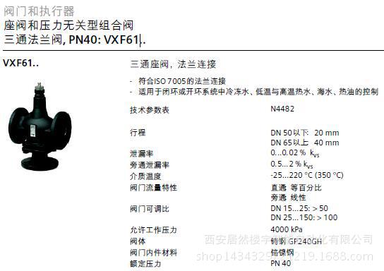 西门子VXF61三通座阀,法兰连接 apmax-仅针对阀门作混合阀应用时有效.