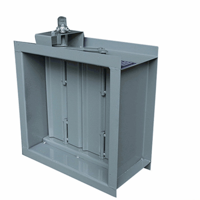 风量调节阀又叫调风门,是工业厂房民用建筑的通风、空气调节及空气净化工程中不可缺少的中央空调末端配件,一般用在空调,通风系统管道中,用来调节支管的风量,也可用于新风与回风的混合调节。 (1)对开多叶风量调节阀接管尺寸与全国通风管道标准化规定的矩形风管尺寸相同。 (2)风量调节阀叶片为对开式和顺开式,在通风、空气调节、空气净化系统中作为调节阀。 (3)通过试验测定,风量调节阀的气密性好,其相对漏风量在5%左右,调节性能好
