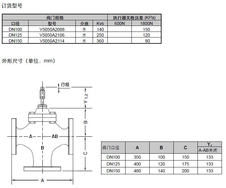 霍尼韦尔V5050A三通法兰线性阀门技术参数