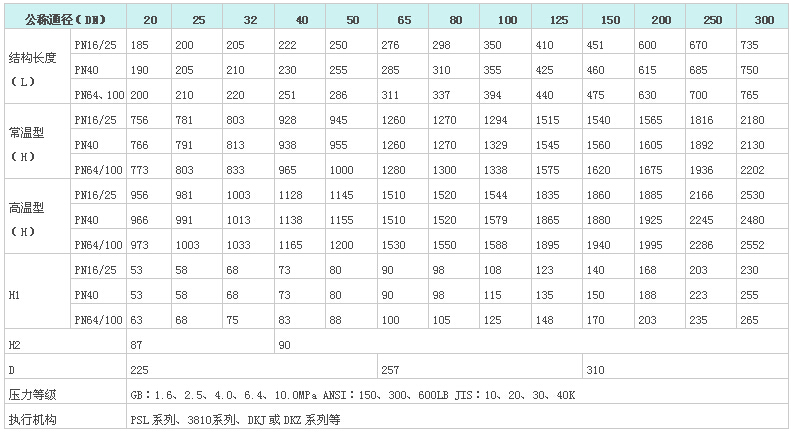 ??电动套筒调节阀是一种压力平衡型调节阀,采用套筒导向,压力平衡型双密封面阀芯机构,配用多弹簧气动执行机构或电动执行机构。流道呈S流线性,整体具有工作平衡、允许压差大、流量特性**、噪音低等特点。特别适用于流量大,阀前后压差较大、泄露要求不搞的场合。本系列产品有常温型、高温型、低温型、调节切断型、波纹管密封型等多种形式。产品公称压力等级有PN1.6、4.0、6.4、10.0;阀体口径范围DN20-300,适用流体温度-196-+560℃范围内多种档次。泄露等级有Ⅳ级、Ⅴ级、Ⅵ级。流量特性有直线、等百分比特性。多种品种规格可供选