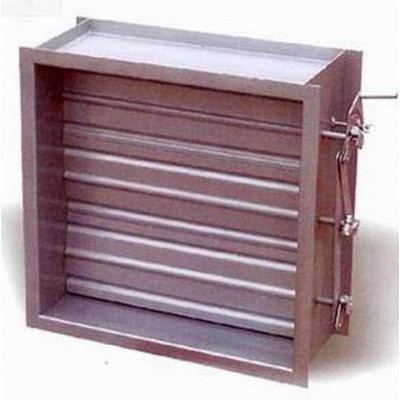 在空调和通风管道中,安装本产品,可通过阀叶片的开合角度控制风量大小。手动对开(单)多叶调节阀可安装在正方形或矩形的截面风道中,通过与手柄相连的四连杆机构操纵对开多层叶片的角度来控制风量,加强调节效果。