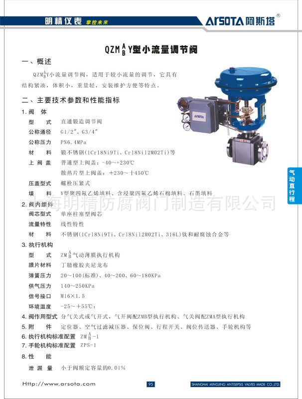 QZMA(B)Y小流量调节阀,适用于较小流量的调节,它具有结构紧凑,体积小,重量轻,安装维护方便等特点。