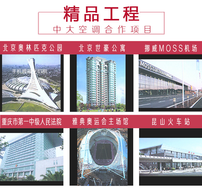 庞大健全的现代化营销网络是中大产品走向世界的高效载体,目前在国内已建有8大分公司和近2000个销售网点,分公司实现了销售功能和服务功能的和谐统一,每个分公司都建立了销售服务机构,建立健全了客户档案机制,使“全过程无忧虑”服务得到了彻底落实。在深耕国内市场的同时,中大公司积极应对国际化挑战,积极参与国际交流和竞争,成为德国IKK、意大利MCE、美国AHR展会的长期合作伙伴,在广泛参与国际合作的前提下,中大空调公司分别在美国、意大利、中东、澳大利亚等**和地区建立了办事机构或者销售网点,现在公司的国际化销售格局已经拉开帷幕并初见成效。截止到目前,中大空调在世界范围内已经拥有了近2万个样板工程,凸显了中大空调的大手笔、大格局和大未来。