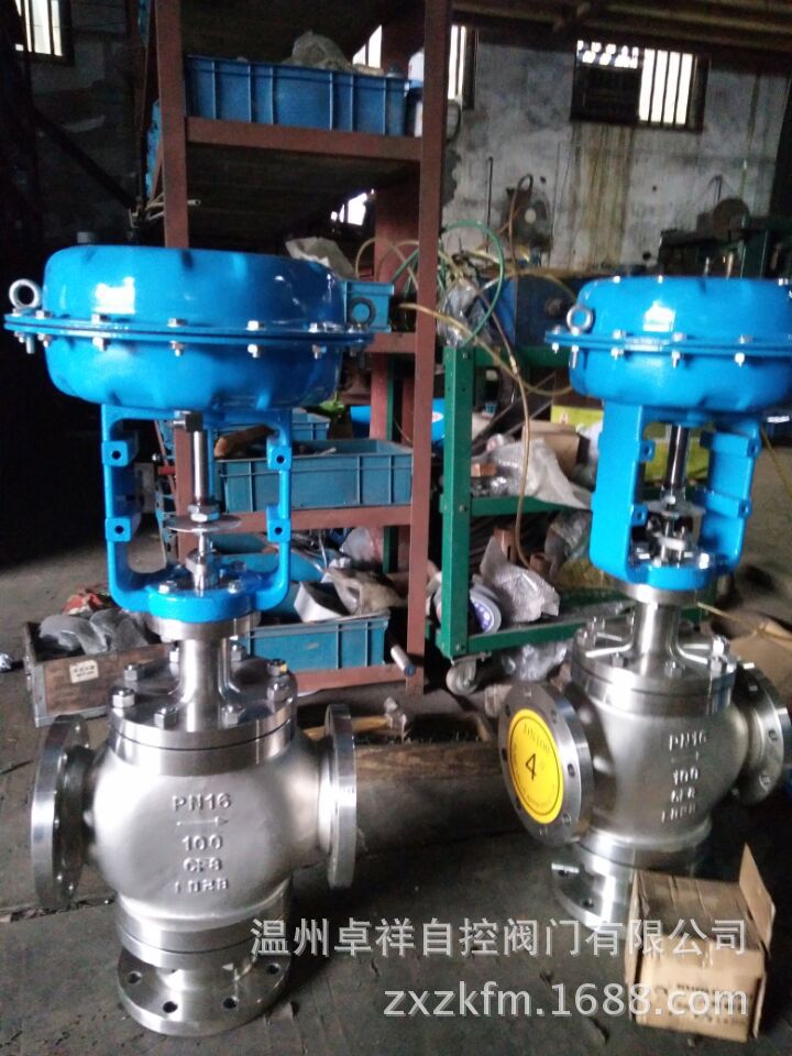 ZJHQ、ZJHX气动薄膜三通调节阀采用圆筒型薄壁窗口形阀芯导向,不同于柱塞形阀芯的衬套导向。配用多弹簧执行机构,具有结构简单、重量轻、体积小、拆装方便等优点。广泛应用于精确控制气体、液体等介质的工艺参加如压力、流量、温度、液位保持在给定值。适合于把一种流体通过三通阀分成二路流出或理把两种流体经三通阀合并成一种流体的场合。 本系列产品有三通合流及三通分流两种。公称压力有PN16、40、64;公称通径范围DN25—300。适用流体温度由-60℃至+450℃。泄漏量标准为Ⅳ级。流量特性有直线、抛物线两种。
