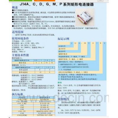 大量现货库存系列Y2、Y3、Y4、Y8,YP、Y11、Y17、Y27、Y25.Y50、Y50DX、Y50EX、Y68、2CX,XC、XCE、XCD、XCF、XCG、CXCH、LBXC、Y50X、XKE、YMA、YMB、YMG、GJB598,GJB599. Y2M. FQ.FQN.Q型,P型系列等圆形电连接器,航空插头。J3,J4,J6,J7、J14A、J18、J36A,J30、J30J,CB.ZJ系列、CD系列等矩形连接器(接插件)、CY系列等印制板连接器,采用线簧插孔的J系列、PDS系列等矩形连接器,PJS系列等小矩形连接器,JCD系列等微矩形连接器以及、SFX系列等水下圆形连接器、MX系列气密封圆形连接器系列微矩形连接器等几十个系列、上千种规格的产品,广泛用于航天、航空、兵器、国防电子工程、军事电子装备等高科技领域和煤矿、通讯、石油、铁路及电力等国民经济各个部门。应用于战略战术系统、电子对抗系统、野外作业电能、通讯信号连接系统、工交电力和邮电、煤矿. 行业、工业传动行业等。