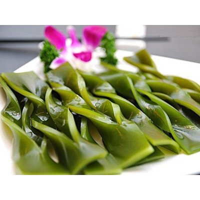 海带(学名:Laminaria japonica,又名:江白菜),是多年生大型食用藻类。其集中长于太平洋西北部,经引种后在中国辽东半岛及山东半岛沿岸海域广泛分布。海带呈褐色扁平带状。其分叶片、柄部和固着器,固着器呈假根状。叶片为表皮、皮层和髓部组织所组成,有两条纵沟贯穿于叶片中部,形成中部带。叶片下部有孢子囊,具有黏液腔,可分泌滑性物质。海带生长主要受温度、光照、营养盐和植物激素等因素影响。