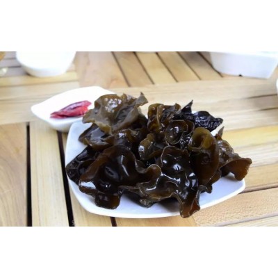 木耳菌丝体是由无色透明、具有横隔和分枝的管状菌丝组成,扇状;木耳子实体常常呈耳状或环状,渐变为叶状,基部狭窄成耳根,表面光滑,或有脉络状的皱纹;干后强烈收缩,上表面子实层变为深褐色至近黑色,下表面呈暗灰褐色,布满极短的绒毛。其寄生于阴湿、腐朽的树干上,生长于栎、杨、榕、槐等120多种阔叶树的腐木上。木耳是一种营养丰富、滋味鲜美的副食品,并且有很好的作用。