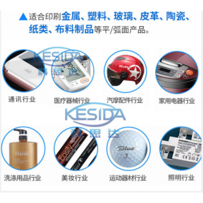 适合印刷金属、塑料、玻璃、皮革、陶瓷、纸类、布料等平弧面产品