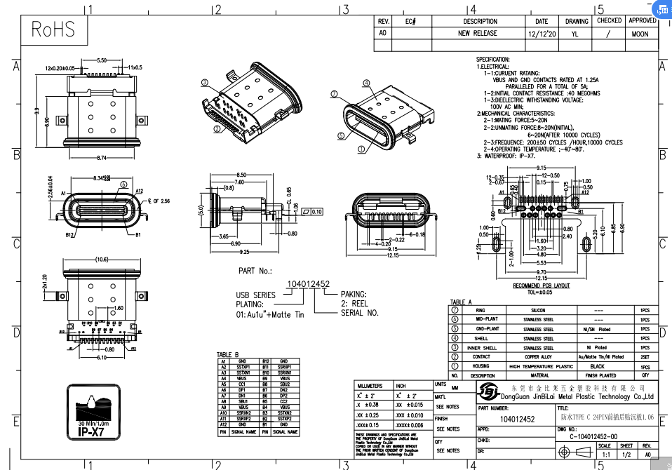 标签: 防水type c连接器 防水type-c母座 usb TYPE C 沉板式 连接器厂家