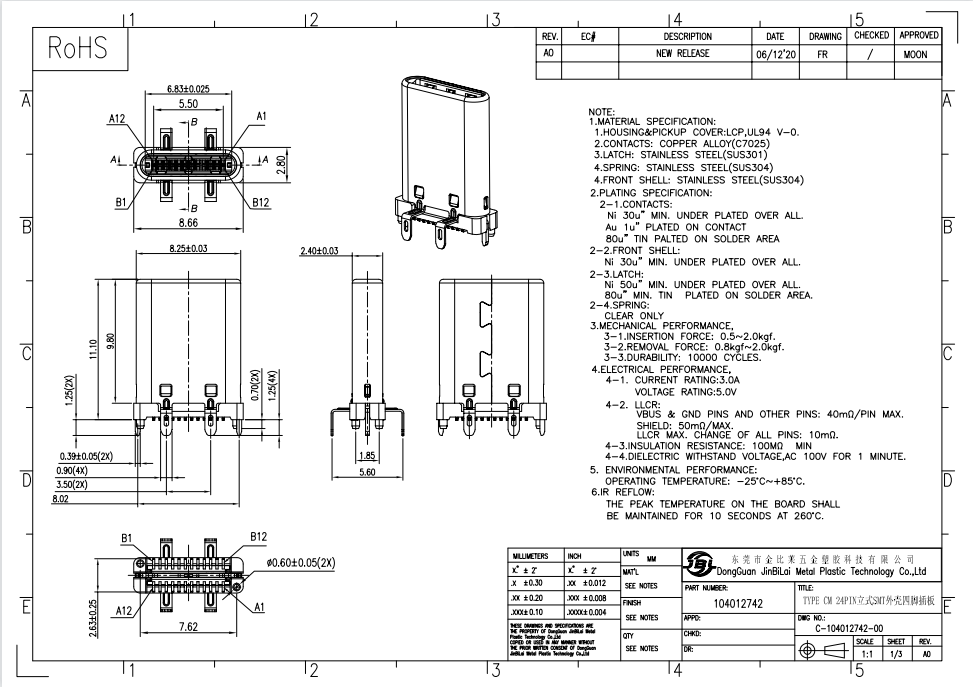 标签: type c连接器 type-c公头 usb TYPE C 24pin 立式 连接器厂家