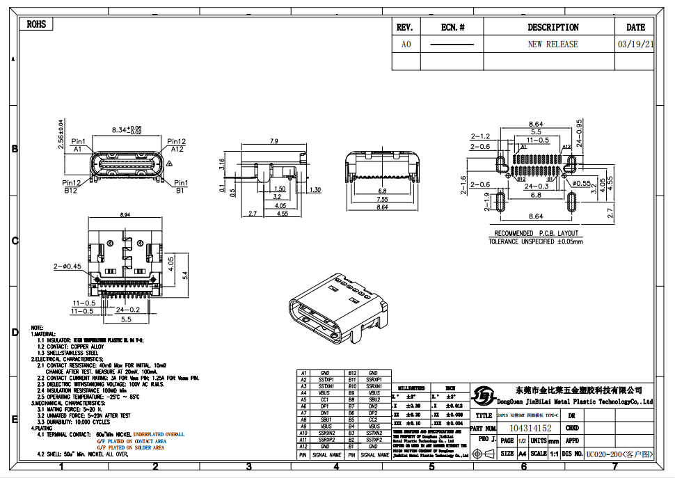 标签: type c连接器 type-c母座 usb TYPE C 24pin 连接器厂家