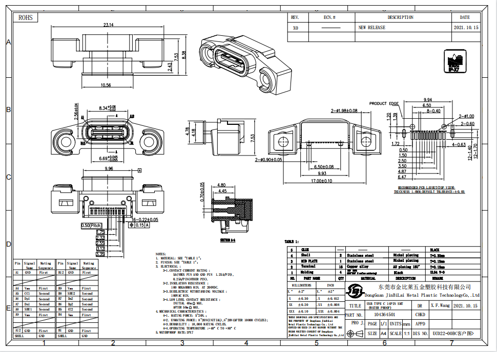 标签: type c连接器 防水type-c母座 usb TYPE C 16p 连接器厂家
