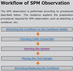 使用探针显微镜开始观察之前, 可以在向导画面上设置所需的条件, 如安装微悬臂、扫描范围等。所以经验较少的操作者也能安心完成操作。