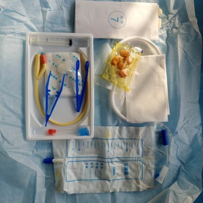 组成:由包布、洞巾、方巾、腰盘、器械盘、注水筒、镊子、管夹、引流袋、导尿管、导尿管标签.橡胶检查手套、薄膜手套、试管、碘伏棉球、硅油棉球、棉球、纱布块组成。
