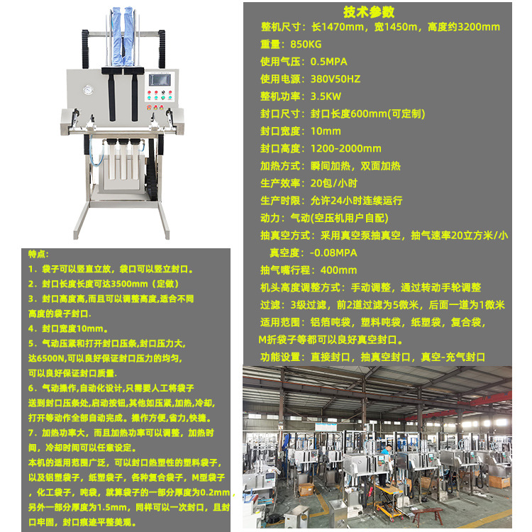 适用范围:铝箔吨袋,塑料吨袋,纸塑袋,复合袋,M折袋子等都可以良好真空封口。