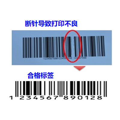 可检测出打印头断针,避免打印出无效条码。