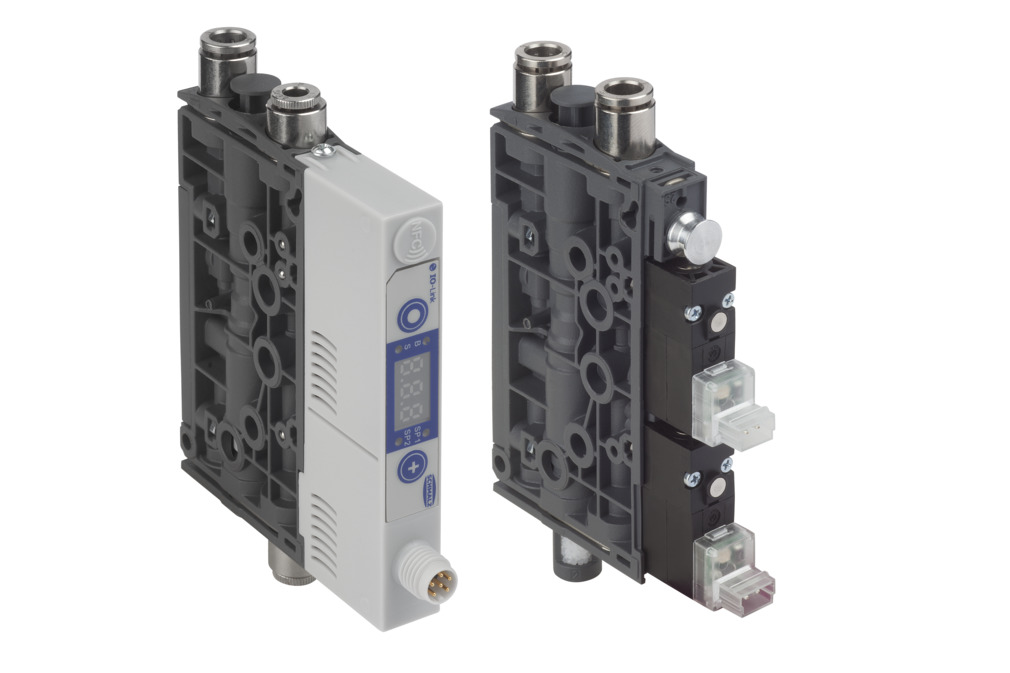 气动真空发生器即真空发生器,通过压缩空气管路实现操作。与电动真空泵相比,气动真空发生器的吸力更大,因此可以搬运多孔工件。此类真空发生器特别小巧、紧凑,而且动力强劲。