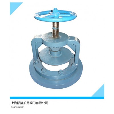 船用甲板表面阀,包括连接底板(1)、支座(2)和阀杆(9),其特征在于:所述连接底板(1)与支座(2)之间通过螺母(3)和双头螺栓(4)紧固,双头螺栓(4)并贯穿于连接底板(1)的内腔;所述支座(2)的两端固定连接有U型支架(16);所述阀杆(9)贯穿于U型支架(16)并通过压紧螺母(8)与阀盘(6)连接;所述阀盘(6)与阀杆(9)的接触面设有控制垫(7);所述阀盘(6)设置于支座(2)的空腔处,并与支座(2)空腔处的O型圈(5)接触连接;所述阀杆(9)与U型支架(16)通过圆柱销(11)固定,圆柱销(11)的外表面设有螺纹套(10);所述阀杆(9)的顶部通过第二螺母(14)连接有手轮(12),手轮(12)的两端固定连接有连接杆(15),连接杆(15)的另一端固定连接在阀杆(9)上,连接杆(15)与阀杆(9)。