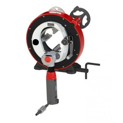 行星回转式切割是使自转的刀片绕着管子公转进行切割。管子被加紧在确保和刀片垂直的自定心卡盘上。切割前,进刀手柄先进发,然后固定进刀位置,接着旋转手轮,在刀片公转一周以后,管子自动切割下来。由于夹持面和切割非常垂直,切割中受力并不大,所以可以得到与管子垂直的切割平面,行星轨道式切管割机的优点: