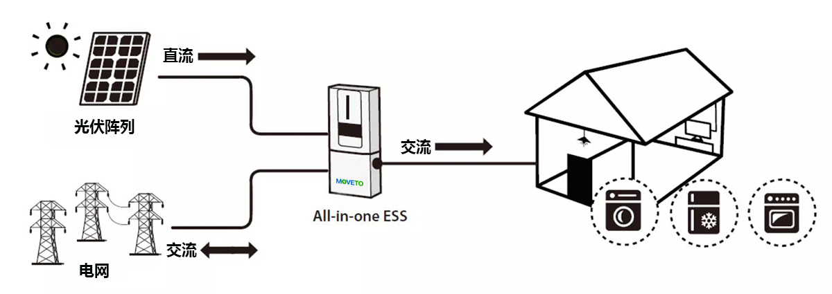 该储能系统可以利用光伏发电、市电和电池电力为连接的负载供电,并将光伏太阳能模块产生的剩余能量储存起来以备不时之需。当太阳落山、能源需求高或停电时,您可以使用该系统中存储的能源来满足您的能源需求,无需额外费用。此外,该储能系统可帮助您实现能源自用并最终实现能源独立的目标。