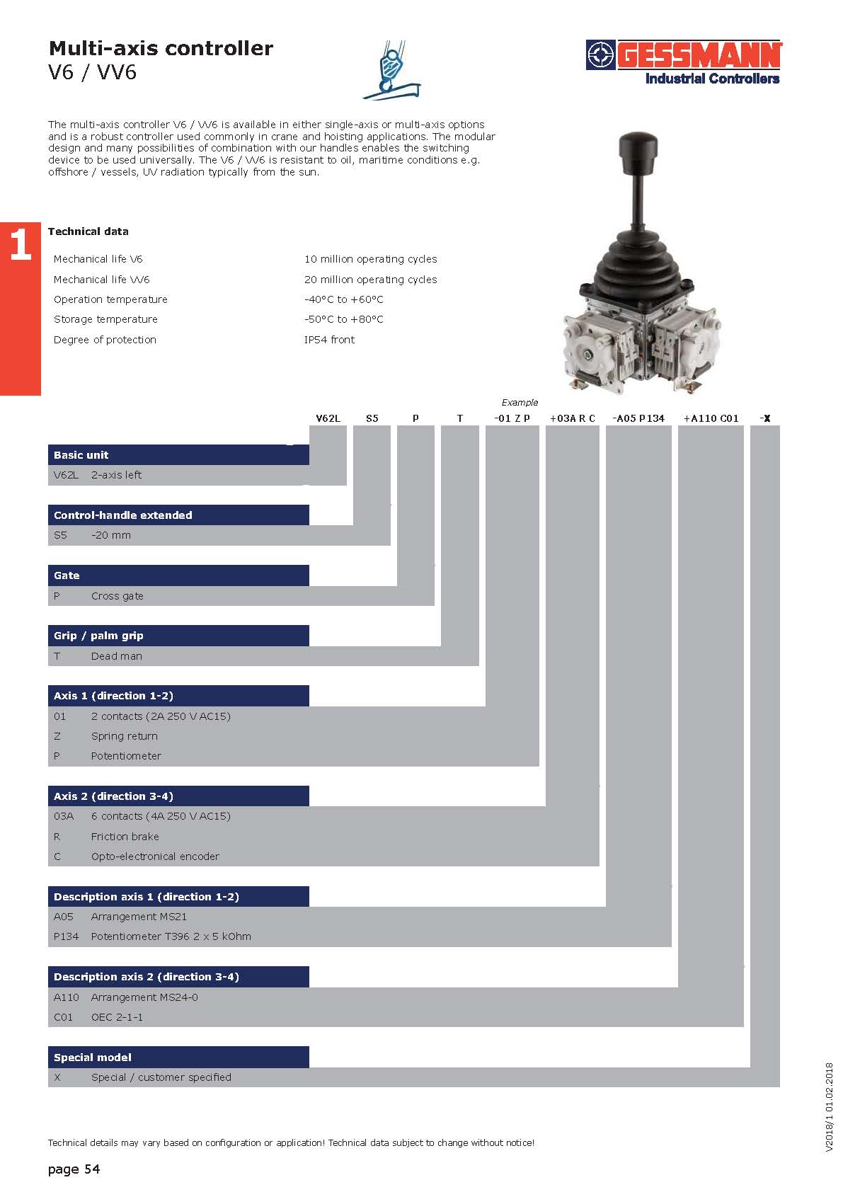 GESSMANN 杰斯曼 多轴控制器 V6/VV6系列 V62LS5PT手柄控制器 德国进口