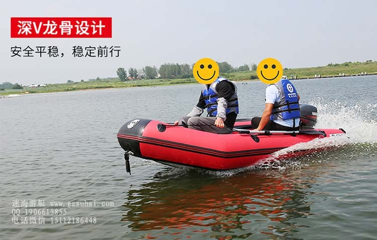 4 、进口材料色牢度高、布面颜色历久如新,进口专用耐磨双色护舷,使船体经久耐用。挂机艇艇壳气囊采用胶粘与高周波热合工艺加工制作,气密好、强度高、经久耐用、质量优良。