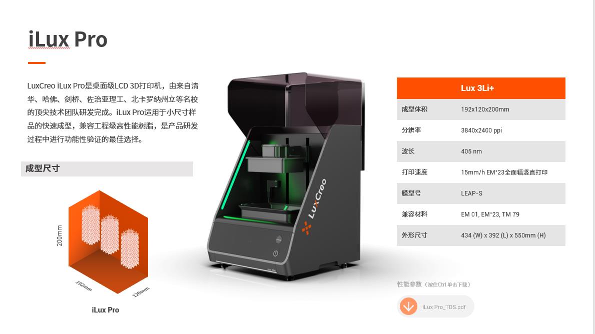 LCD光固化3D打印机iLux Pro:能打印“功能性弹性体”的桌面机