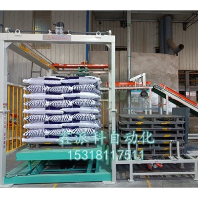 高位码垛机的操作简单,效率高,一台码垛机就能够完成一条流水线的工作。技术人员按照企业的生产需求对码垛机进行编程,后期只需要人工在屏幕上进行操作就可以了。高位码垛机的工作效率在每小时400-500包左右。高位码垛机将料袋输送至设置的高度后,按照预编程好的方式对料袋进行转位、分层、码放,将料袋按照顺序码放到托盘上,然后将码垛好的物料推送出去。