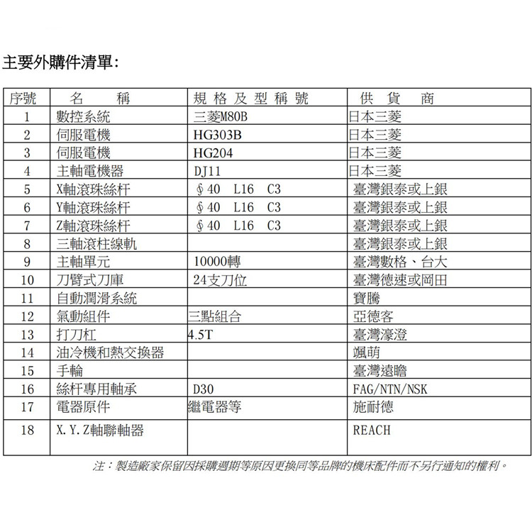 3、三轴滚珠螺杆採用进口髙精密双螺帽滚珠导螺杆直接式传动且施以适当之预拉设计。