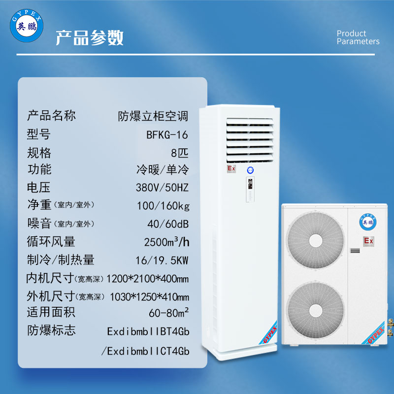 英鹏化工制药厂防爆立柜式空调变电站基站防爆空调BFKG-16