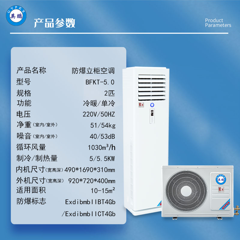 英鹏化工制药厂防爆立柜式空调变电站基站防爆空调BFKT-5.0