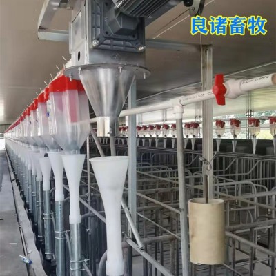 通过料线将饲料密闭快速输送到母猪定量杯或食槽中,可以单独饲喂每头母猪和群养管理怀孕母猪,能够做到统一时间自动落料,同步饲喂,明显节省人力成本,大幅度降低劳动强度,而且大大方便了猪场管理
